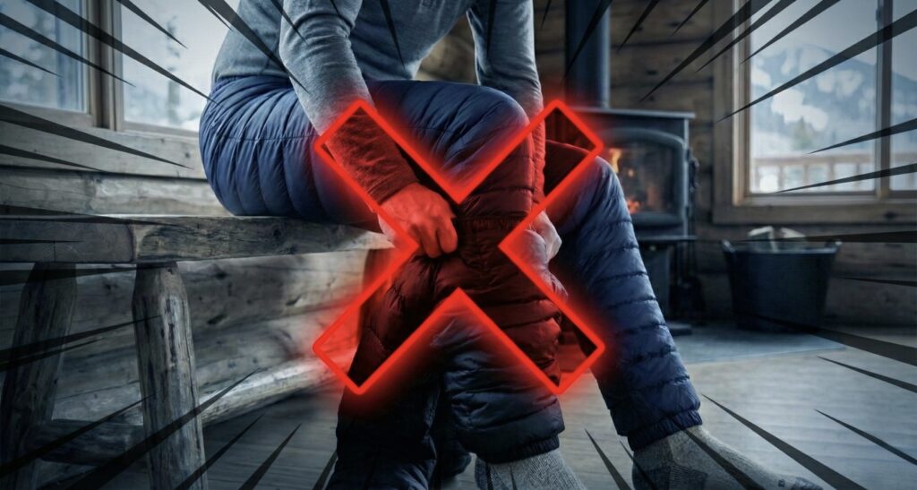 ダウンパンツの下を厚着してしまうと、体温がダウン内に浸透せず、保温効果が低下してしまいます