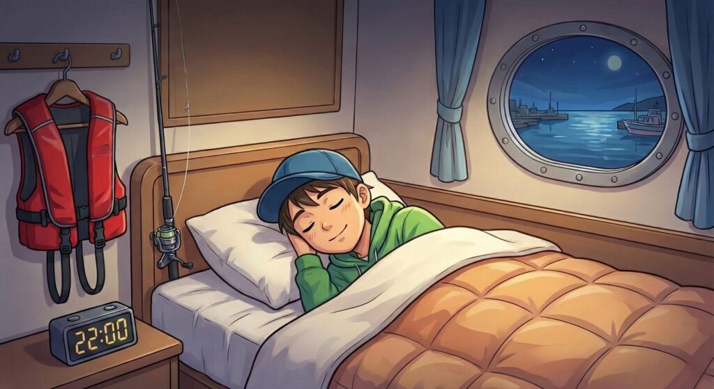 充分な睡眠による良好な体調は船酔いから遠ざけるため、何とかして睡眠をとる努力をしましょう