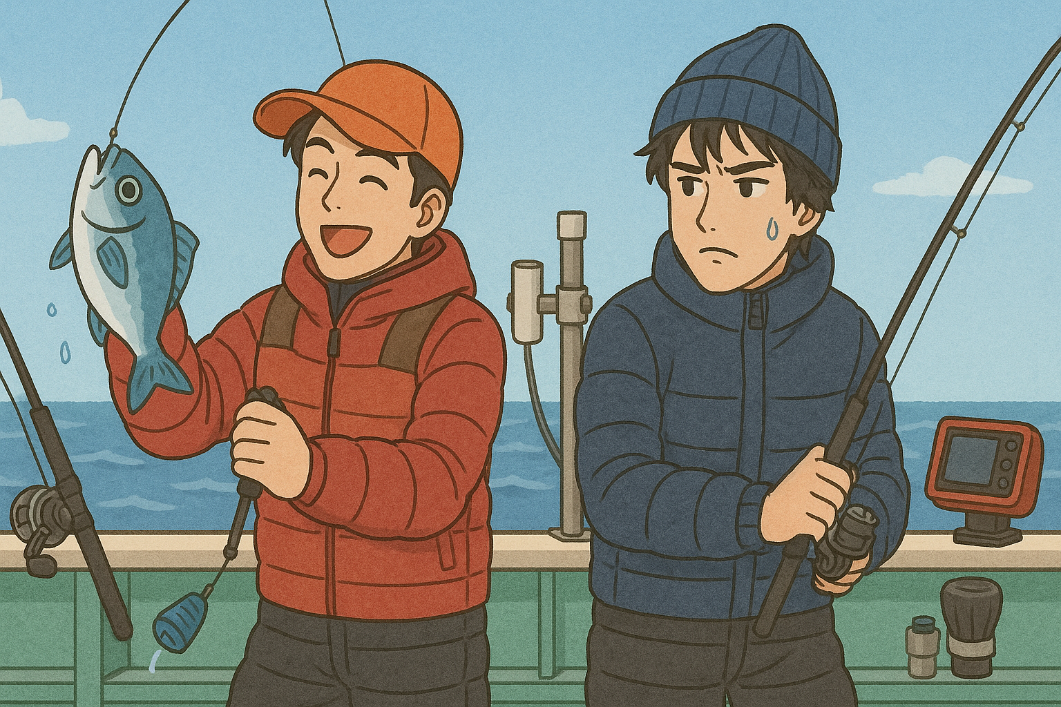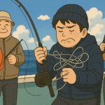 ”オマツリ”とは、釣りの最中、自分の仕掛けと他の乗船者との仕掛け同士が絡むことを指す釣り用語です