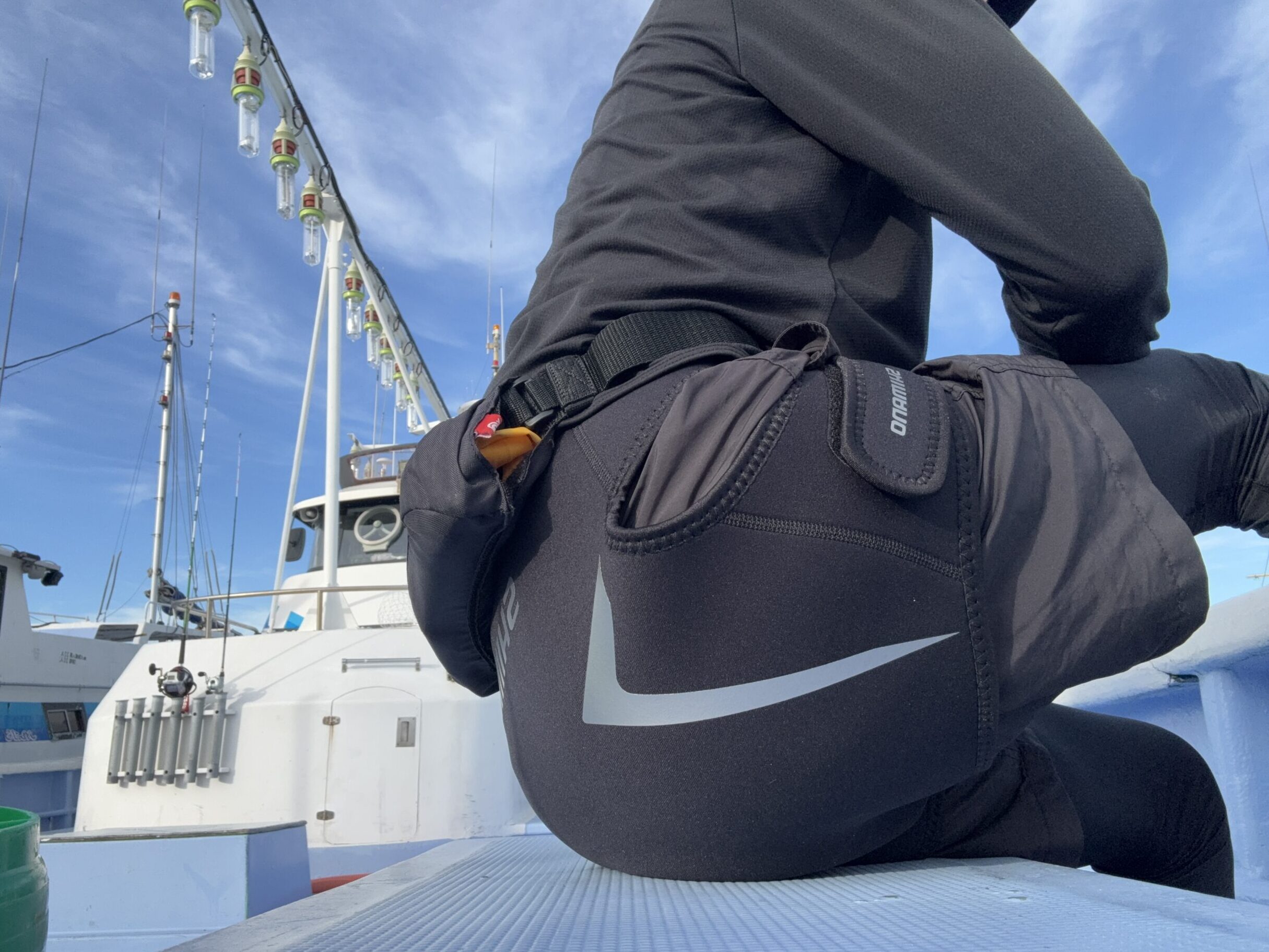 それに対し”ヒップガード”も軽いのは同じですが、一度装着してしまえば、釣りを終えて船を降りるまで気にする必要がありません