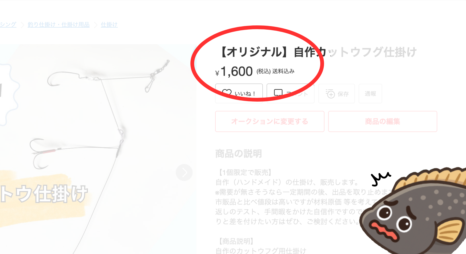 市販の「カットウフグ仕掛け」と比べ、値段は高いと思います