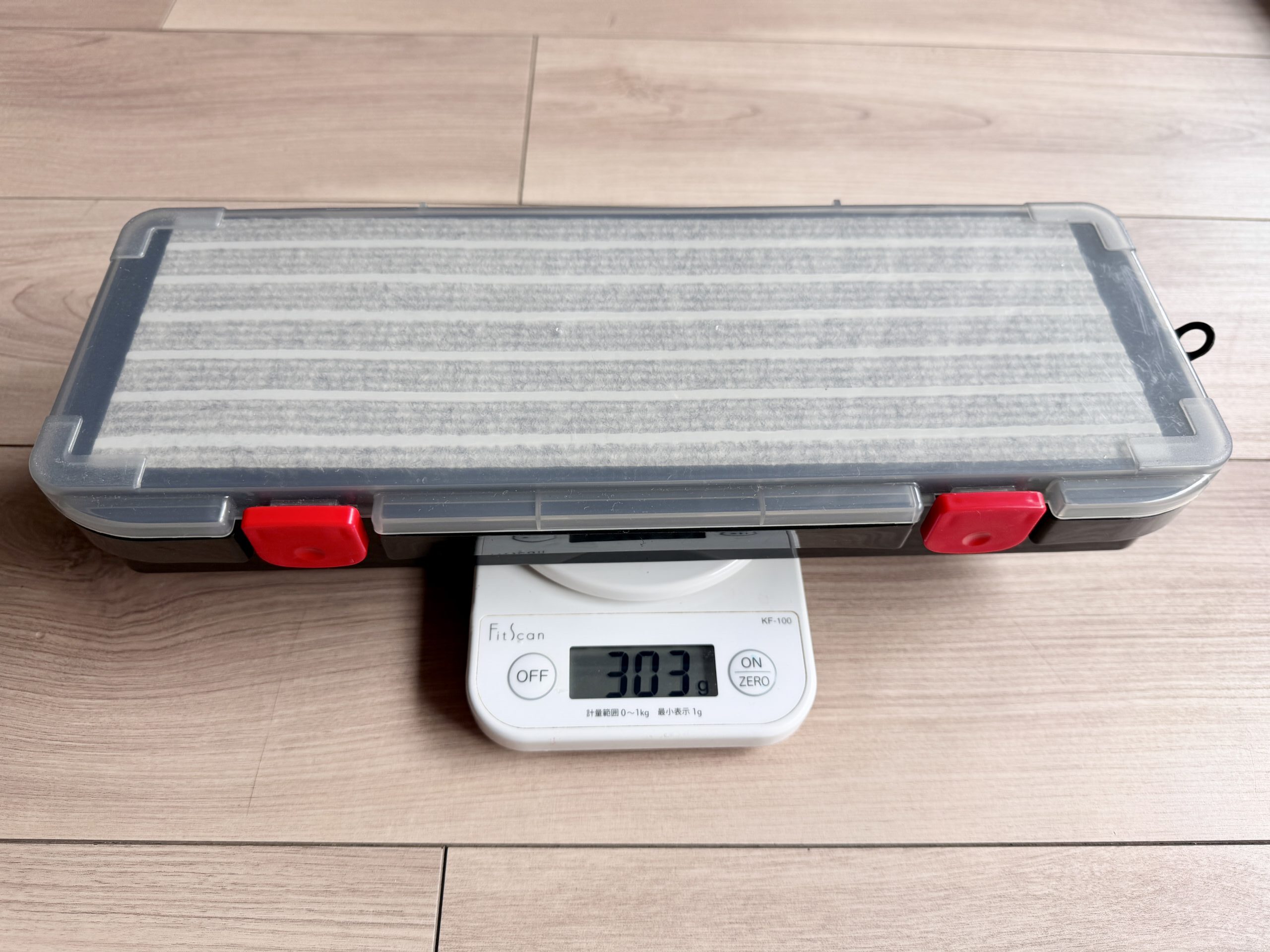 試しにブログ主が自作した”カットウ仕掛け収納ケース”の重さを計ってみると…
