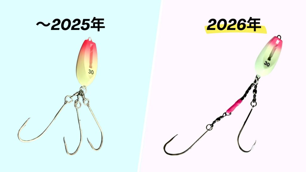 ちなみに、オモリとハリ、スイベル、スプリットリングといったパーツに変更はありません